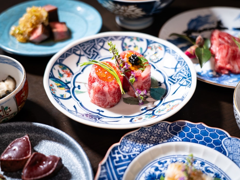 新橋・銀座近く、カウンター越しに職人技を眺めながら旬の和牛フルコースと銘酒を味わえる割烹。 -