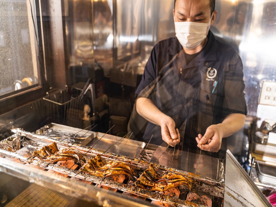 銀座駅すぐの上質空間で、ライブ感あふれるカウンター越しに極上のひつまぶしや鰻料理を堪能。 -