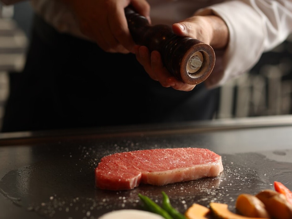 浅草でA5ランク神戸牛ステーキを、目の前の鉄板焼きスタイルで堪能できる贅沢レストラン。 -