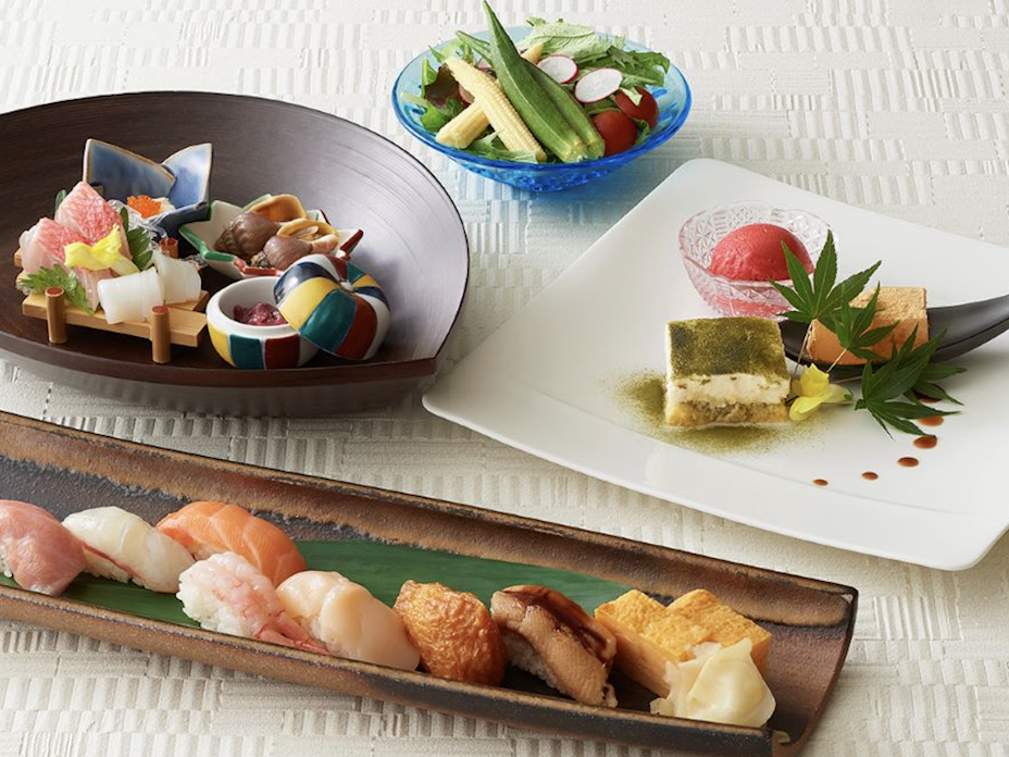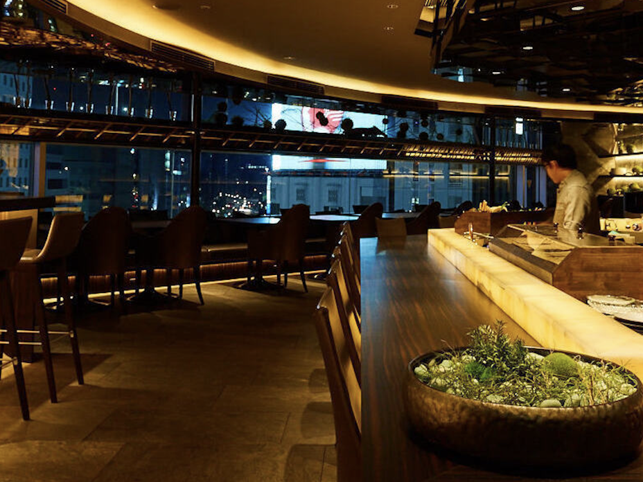 21階眺望で日本料理と板前握り寿司を味わう。 -
