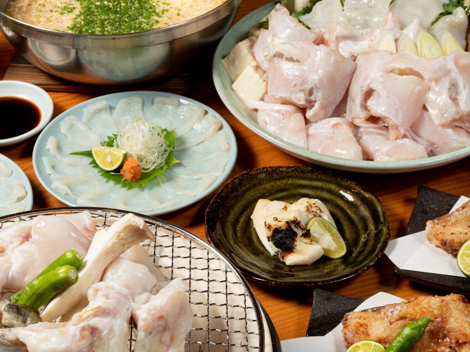 豊洲直送とらふぐを広々店内で会食にも。 -