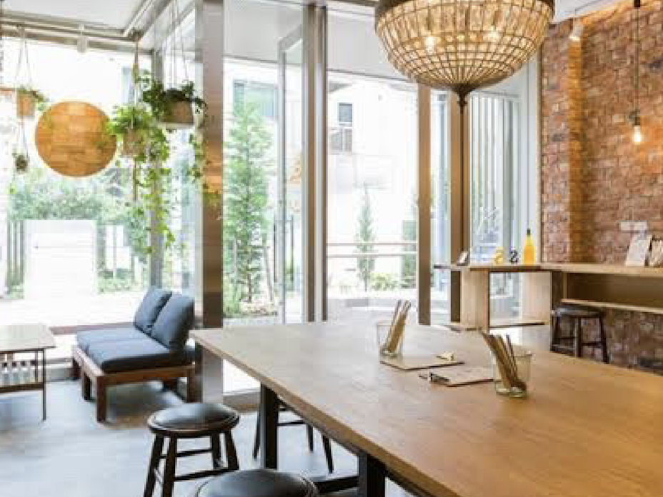 表参道裏路地の静かな広々カフェスペース。 -